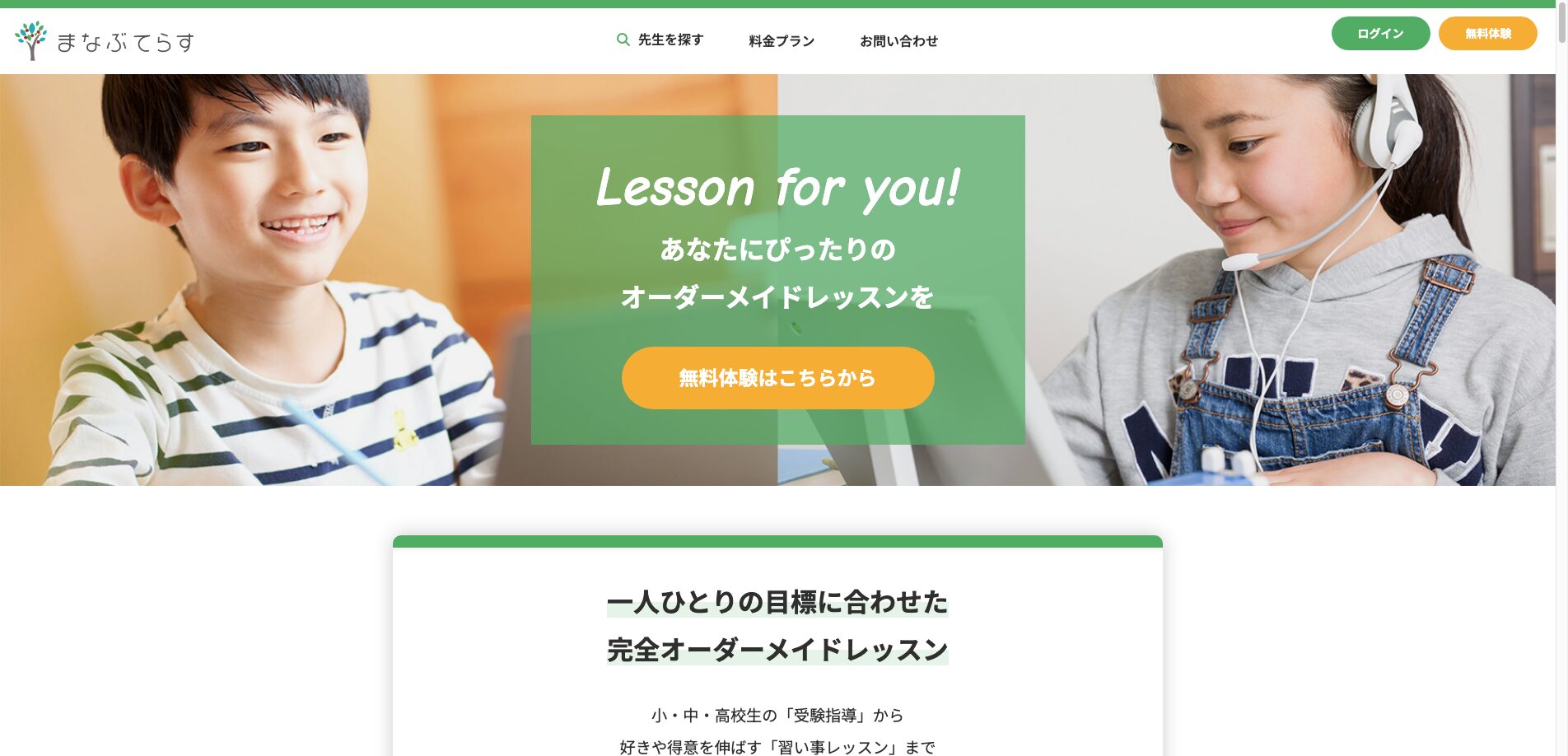 まなぶてらすは、そろばんを含む様々な習い事が学べる総合型オンライン家庭教師サービスです。