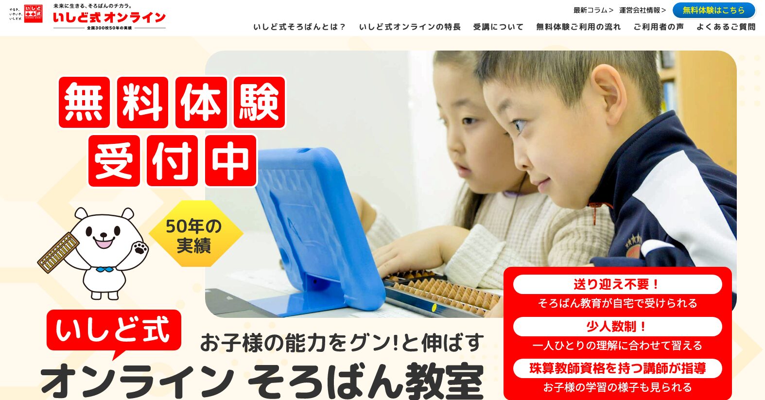 いしど式は、全国に300以上の教室を持つ大手そろばん教室のオンライン版です。