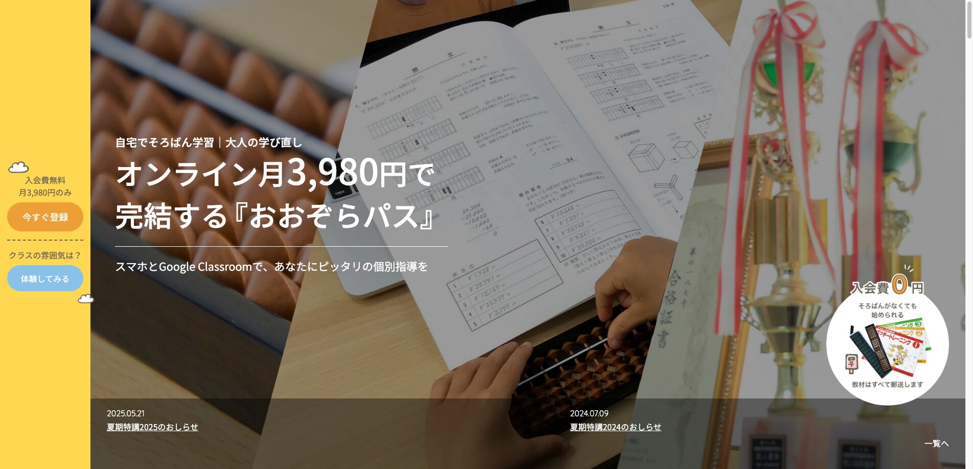 おおぞらパスという月額定額制サービスでは、そろばん学習が完結するシステムになっており、追加料金なしで継続的に学習できます。
